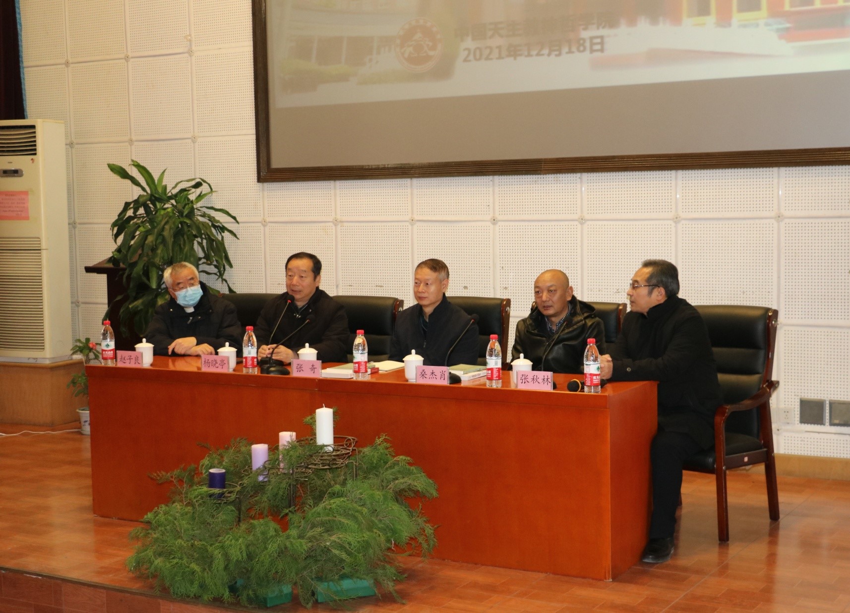 杨晓亭常务副院长带领我院师生在圣伯多禄礼堂落座,向我院学员详细介绍了中国天主教神哲学院办学历史、校训、生源、学制等人才培养情况。张秋林教务长详细介绍了中国天主教神哲学院的专业设置、课程结构等教学情况。张奇常务副院长向在座的修生介绍了全讯600cc大白菜办学情况。