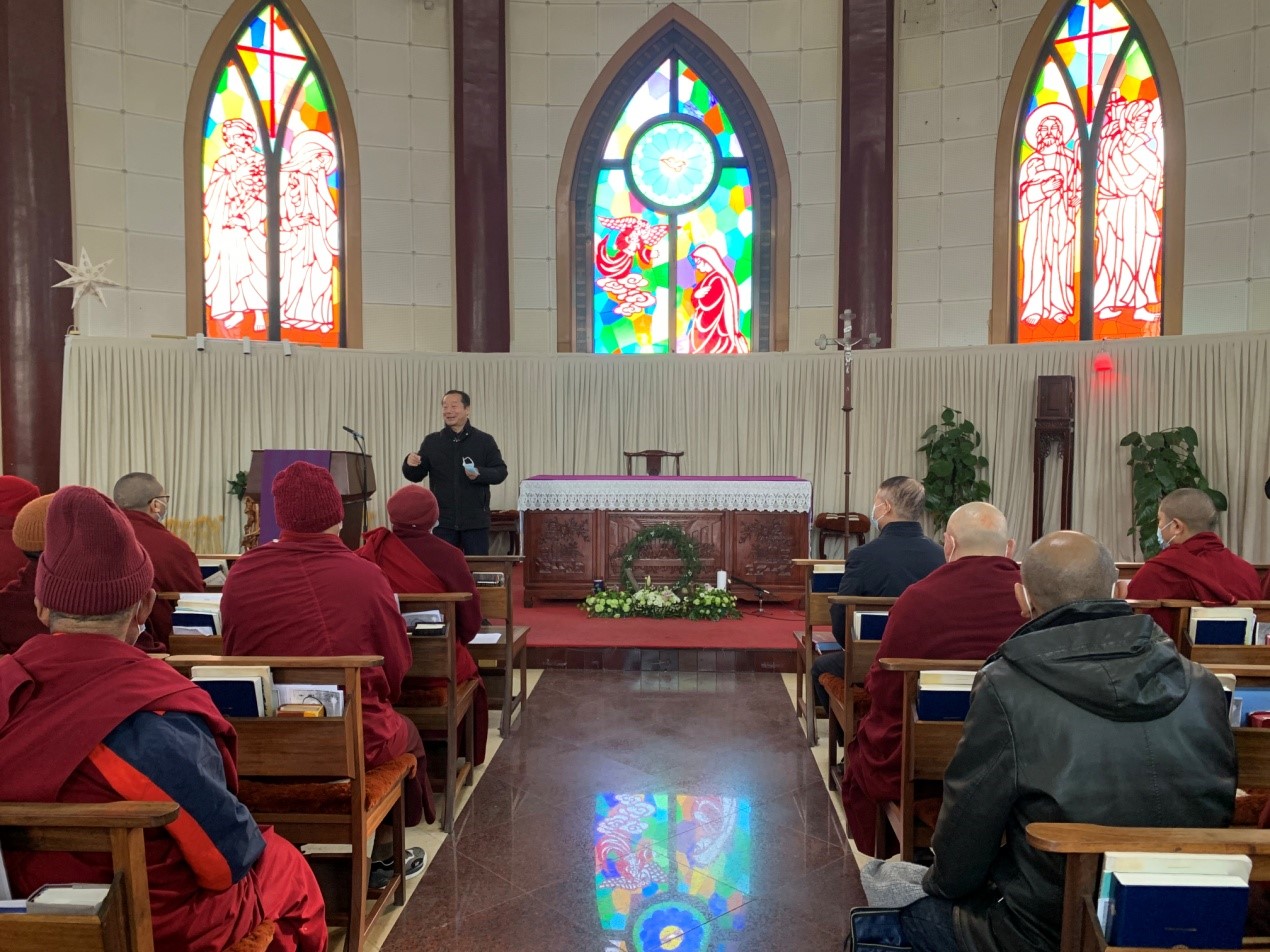 12月18日,我院常务副院长张奇同志带领2019级、2021级高级学衔班师生56人赴中国天主教神哲学院开展现场教学。中国天主教神哲学院常务副院长杨晓亭主教、副院长赵子良神父、教务长张秋林神父率修生20余人热情接待。我院学员通过此次现场教学开阔了眼界,增进了对天主教的了解,对党的宗教信仰自由政策的理解。