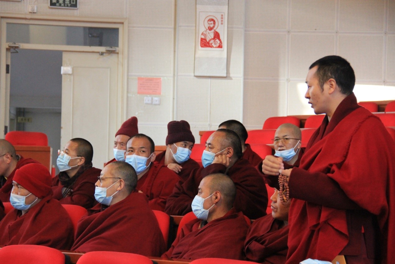 参观结束后,学员和修生们分成三组座谈。围绕各自感兴趣的问题,话题从各自的教义教理、教法传承,到宗教仪轨、服饰文化,从修习的课程到每日的作息。学员与修生之间相互尊重、恭敬有理,畅所欲言、气氛热烈。