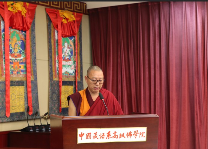 公共课教师代表公却乎杰发言时说,高级佛学院作为藏传佛教现代教育的最高学府,有完善的课程体系、良好的师资力量和舒适的学习生活环境,这些都来自党和国家对藏传佛教界的亲切关怀。希望大家在日后的学习中,认真研修。作为公共课教师,我们将立足教学中心工作,提高教研能力,提升授课质量,努力为培养新时代爱国爱教僧才,引导藏传佛教与社会主义社会相适应贡献力量。