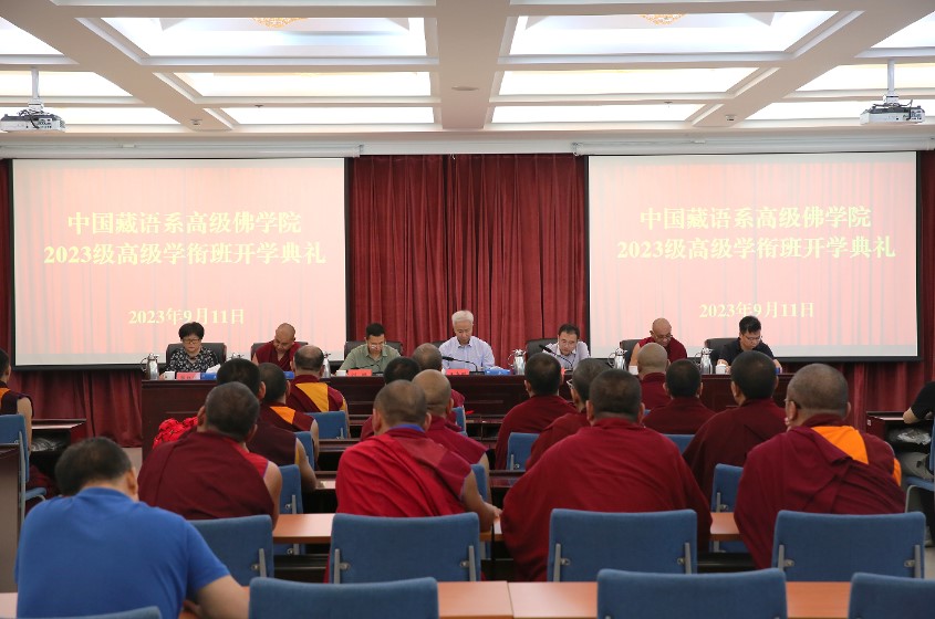 学员代表、经师代表、公共课教师代表先后发言。学员安吾春尼发言时表示,高级佛学院自2004年开始实施藏传佛教三级学衔制度以来,培养了一大批爱国爱教高素质僧才,是藏传佛教的最高学府,也是自己一直追求和向往的求学之地,如今梦想实现,内心无比激动。日后,我们将尊敬师长,团结同学,刻苦学修,不断提高宗教造诣和公共基础知识水平,努力成为品德高尚、守法持戒、精进学修的藏传佛教高素质僧人。